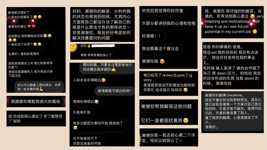 很感恩和谢谢Cheyenne 老师。你说话很有力量,也可以疗愈别人(被你治愈了) 本来迷惑的点,原来可以用不同的角度去看待。 感谢你,我觉得遇到你,就好像一道光,不只是找到自己,也可以慢慢看清方向。
